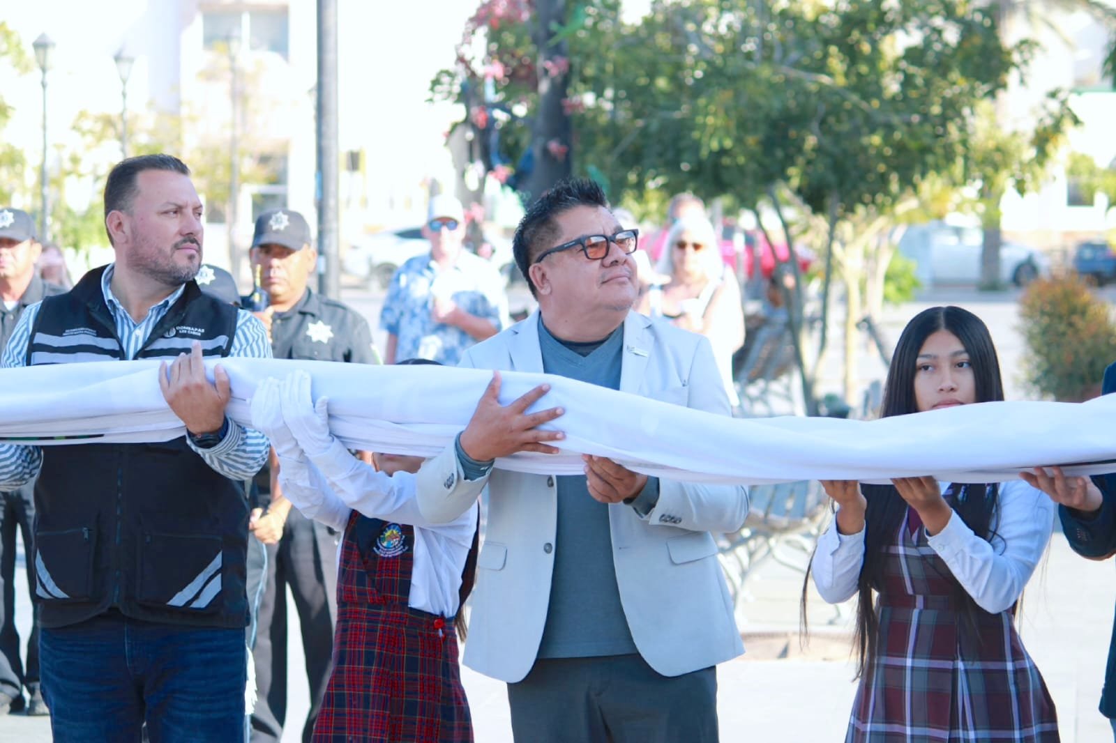 Para finalizar, se destaca que en el marco de la ceremonia de honores a la bandera el alcalde Christian Agúndez encabezó la premiación a escuelas ganadoras del pasado concurso de escoltas alusivo al Día de la Bandera, para lo cual estuvo acompañado de integrantes del H. Cabildo de Los Cabos, titulares de distintas dependencias municipales. Integrantes del III Cabildo Infantil y alumnado de diferentes planteles escolares.