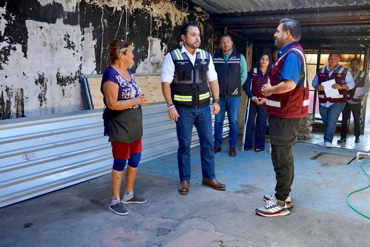 Acompañado por el director municipal de Atención Ciudadana, José Manuel Guerrero Avilés, el alcalde acudió al lugar para hacer entrega de los apoyos destinados a contribuir en la recuperación de los espacios afectados y respaldar a las familias que resultaron perjudicadas por el siniestro.