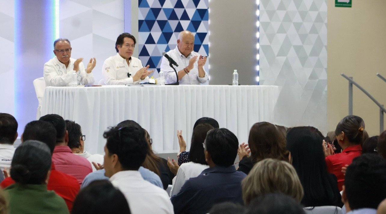 Durante el encuentro, Mario Delgado Carrillo ofreció una conferencia magistral sobre la NEM, en la que compartió los principios y alcances de este modelo educativo y subrayó la prioridad de la administración de la presidenta Claudia Sheinbaum en garantizar espacios de aprendizaje y fortalecer los programas de becas, facilitando la transición de la educación básica a la superior.