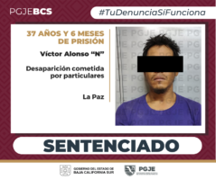 La Procuraduría General de Justicia del Estado (PGJE) de Baja California Sur logró probar la responsabilidad de Víctor Alfonso “N”,...