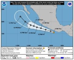 Depresión Tropical Trece-E avanza frente a costas mexicanas; de evolucionar, se llamará «Mario»