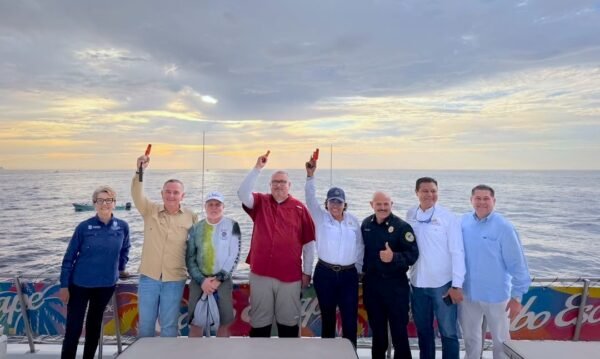 Los Cabos, Baja California Sur.- En representación del alcalde de Los Cabos, Christian Agúndez, el director general de Desarrollo Social, Carlos Castro Ceseña, estuvo presente en el disparo de salida del Torneo de Pesca Bulnes 2026, en la bahía de Cabo San Lucas, donde estuvo acompañado por la delegada municipal de Cabo San Lucas Karina de la O Uribe y el director municipal de Pesca Juan Javier García.