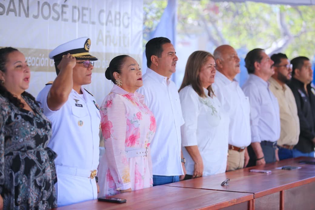 Los Cabos, Baja California Sur.– El XV Ayuntamiento de Los Cabos conmemoró el 296 aniversario de la Fundación de San José del Cabo Añuití y el 46 aniversario de la creación del Ayuntamiento, durante una ceremonia cívica realizada este miércoles 8 de abril en la explanada del palacio municipal.