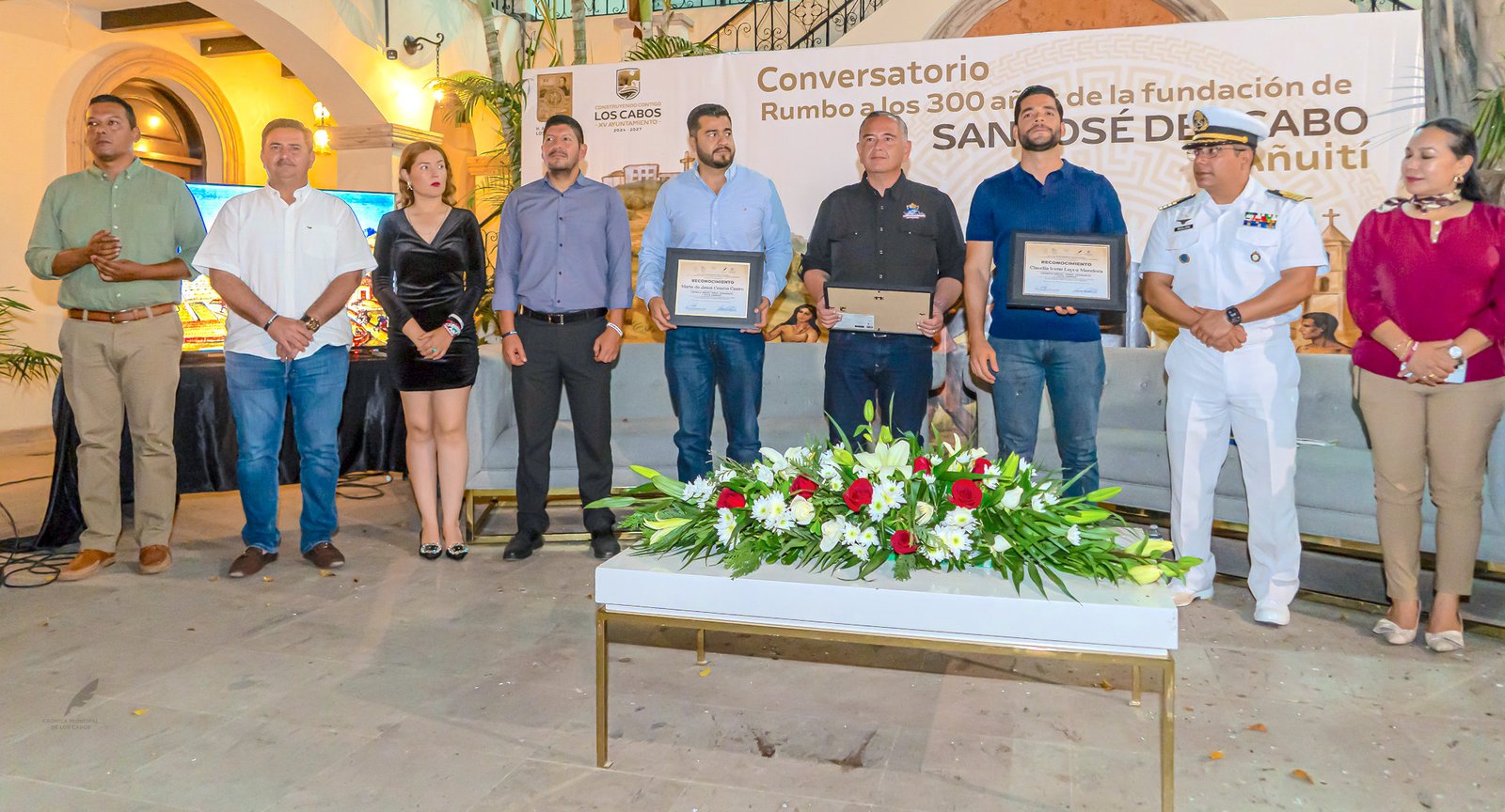 Los Cabos, Baja California Sur.– El patio del Palacio Municipal fue el escenario del conversatorio “Rumbo a los 300 años de fundación de San José del Cabo”, un encuentro que permitió a los asistentes realizar un viaje histórico hacia las épocas previas y posteriores a 1730. Este evento, cuyo tema central fue el origen de la actual cabecera municipal, fue impulsado por el titular de la Crónica Municipal, Aníbal Amador Castro y contó con la asistencia del titular de la dirección general de Desarrollo Social Carlos Castro Cerseña en representación del alcalde Chistian Agúndez Gómez.